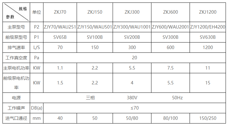 该机组具有主泵启动时间短,真空度高,抽速范围广等特点。该机组前级真空泵采用德国莱宝进口产品、罗茨泵(机械增压泵)可采用进口或合资产品,全套设备风冷。设备设有自动电磁阀、电机启动相序保护器及根据真空继电器设置的自动启动功能,运行安稳可靠。