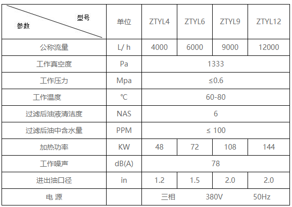 采用美国技术分水及破乳化元件及真空脱水方法,可去除油中的水分及机械杂质。该设备脱水效率高,并可利用真空脱水方法进行脱水,可广泛的用于汽轮机系统透平油的处理。